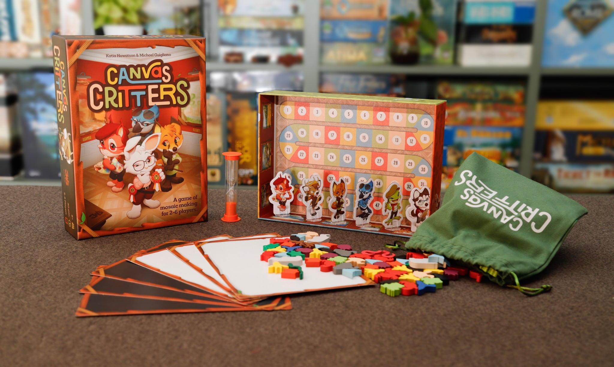 Use colorful animal-shaped wooden meeples to build your own unique mosaic based on each round’s theme card.